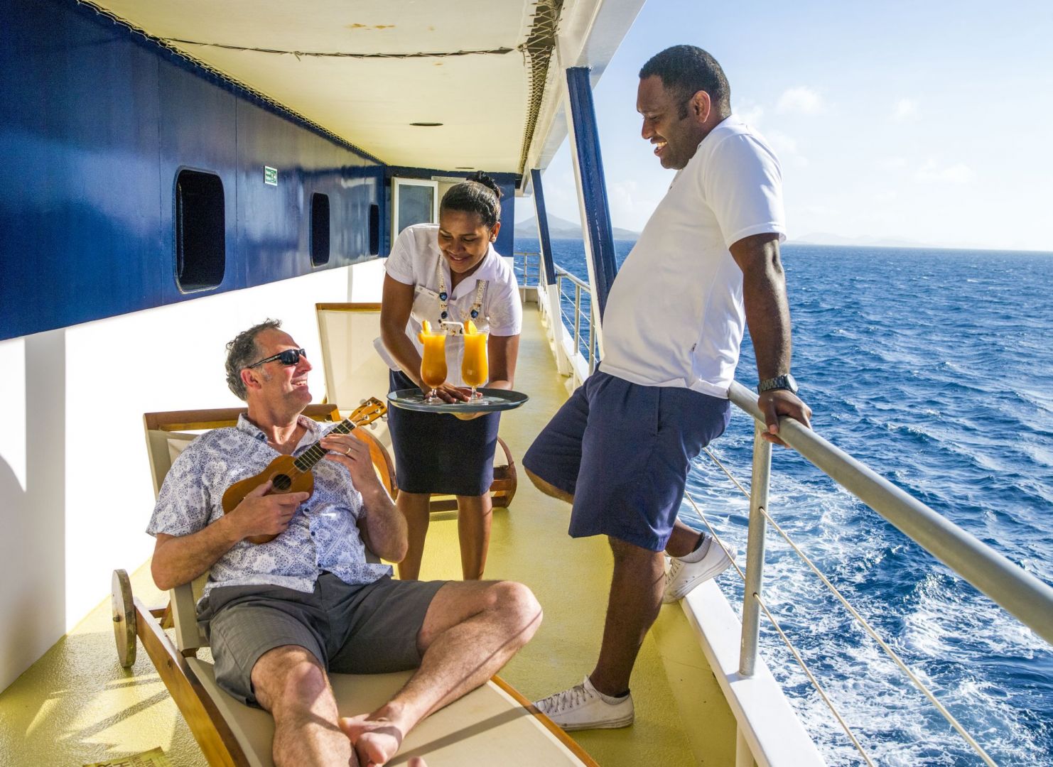 Discover the benefits of small ship cruising onboard the MV. Fiji Princess (32 cabins with a maximum of 64 guests and MV. Yasawa Princess II with a maximum of 44 guests). With small guest numbers, our attentive crew gets to know everyone’s names and preferences quickly, and our guests often leave the ship having made lifelong friends with others on their journey.
